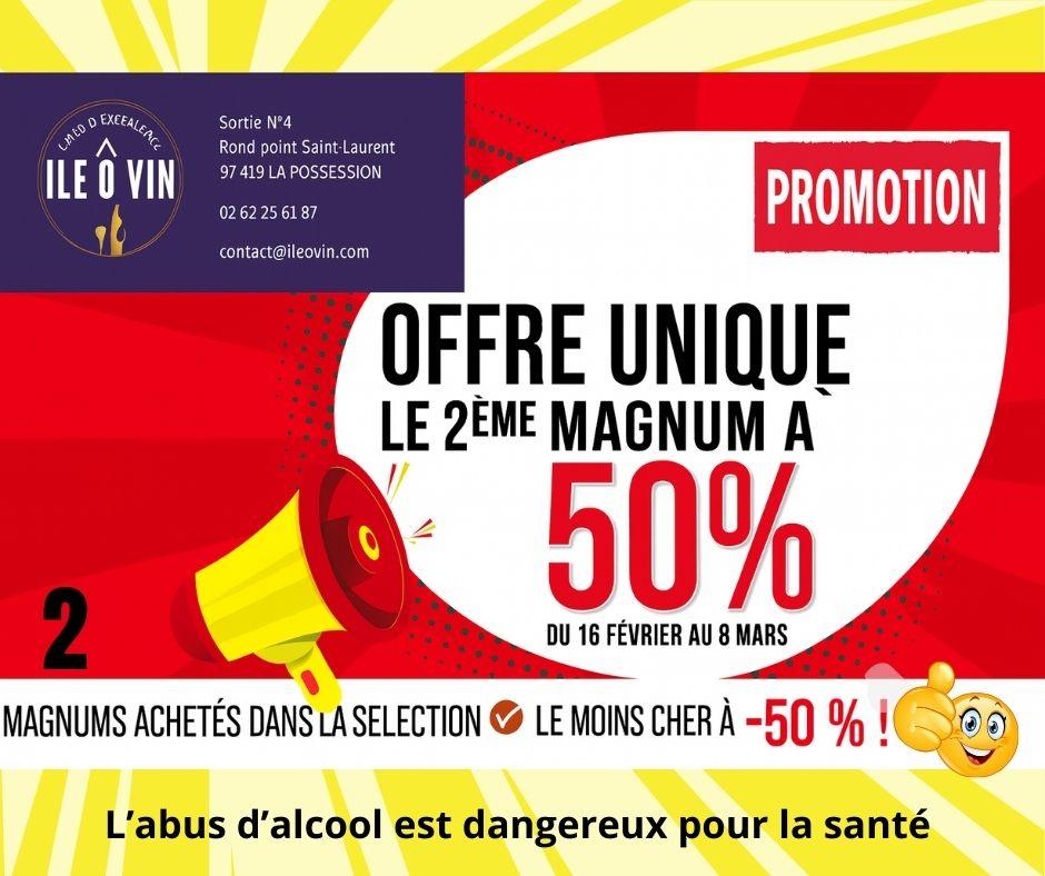 Pour l’achat de 2 magnums : le moins cher des deux est à –50%